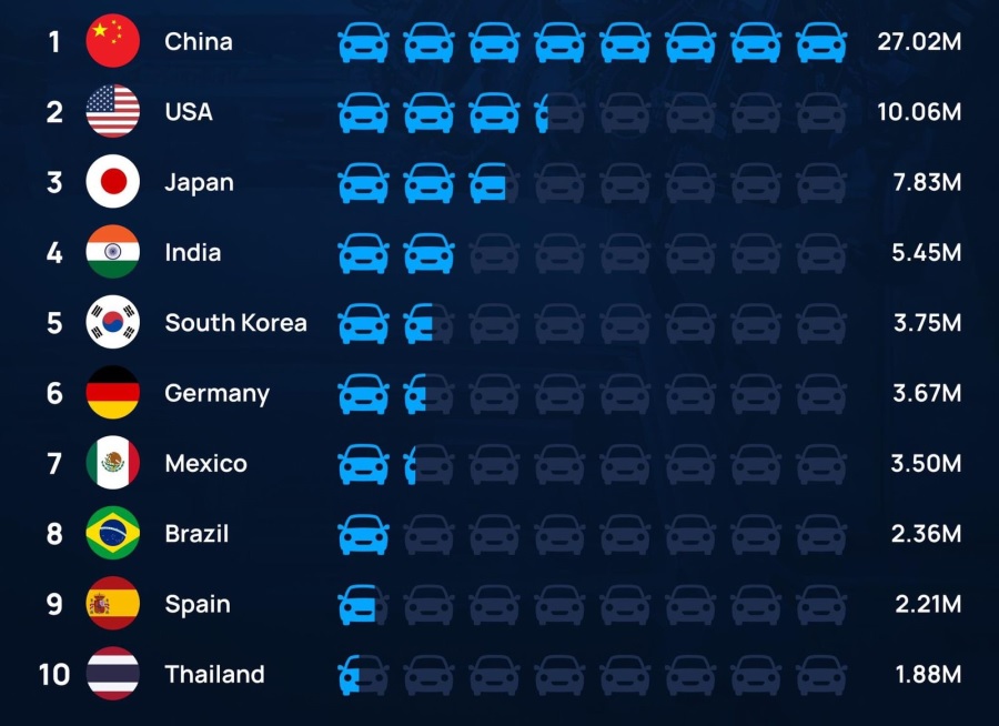 paises que producen mas autos en todo el mundo