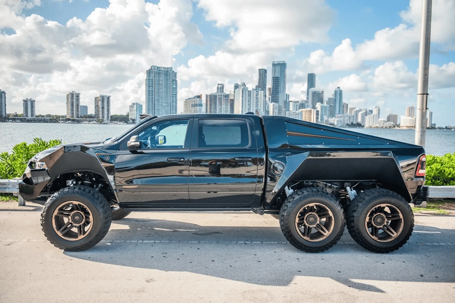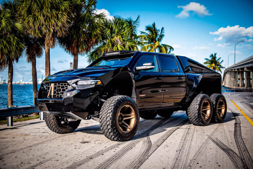 Volvemos al absurdo de fabricación americana con el Hennessey Mammoth 6×6. Al igual que el Juggernaut, está basado en el Ram TRX, pero a diferencia de su homólogo de caza de páramos, no parece que lo hayan encontrado vagando por el desierto después del Burning Man.